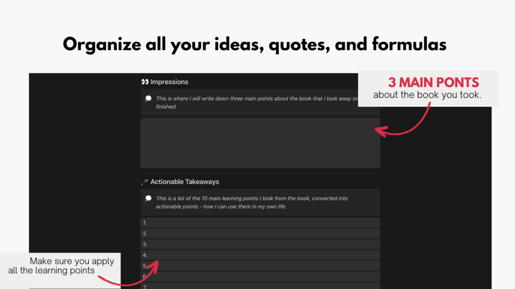 1. Stay Organized: Your template helps users keep their book notes well-organized, making it easy to find information when needed. No more searching through scattered notes.